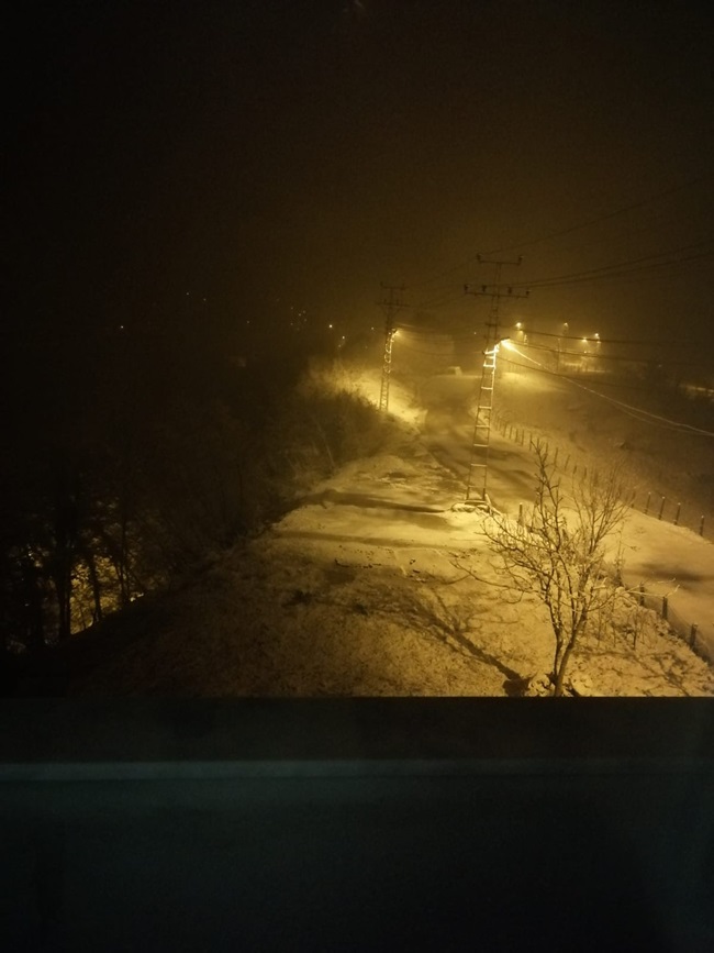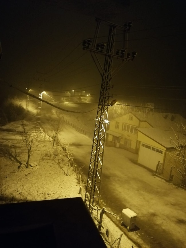 Zonguldak'ın Elvanpazarcık beldesi akşam saatlerinde yağan kar yağışı sonrası beyaza büründü.