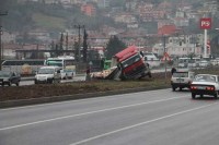 girdiği virajda dorsedeki yükün kayması sonucu direksiyon hakimiyetini