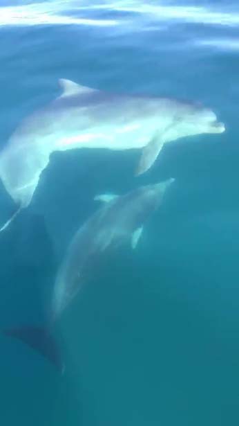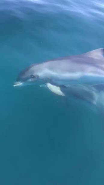 Kent merkezinde balıkçılık yapan Volkan Azaklı, teknesiyle limandan çıktıktan sonra beş yunusun kendisine eşlik ettiği anları kameraya kaydetti. Yunusların adeta dans ederek tekneye eşlik ettiği o anlar ise saniye saniye kameralara yansıdı. Gülümseyerek yunusları yanına çağıran Azaklı, bir süre şaşkınlığını gizleyemedi.