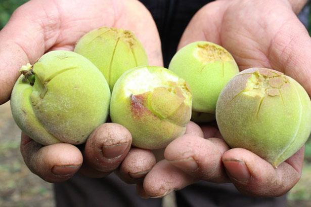 Dolu nedeniyle dallarından kopan ürünlerin sadece bir bahçede ortalama 10 ton