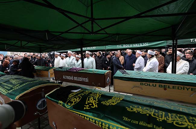 Cumhurbaşkanı Recep Tayyip Erdoğan, Bolu'daki otel yangını faciasında Gültekin ailesinden hayatını kaybeden 8 kişinin cenaze törenine katıldı.