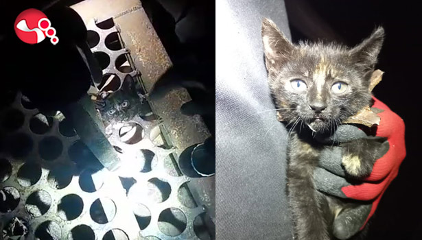 Zonguldak'ın Kozlu ilçesinde başı yağmur suyu mazgalına sıkışan yavru kedi, itfaiye ekiplerinin titiz çalışması sonucu kurtarıldı.