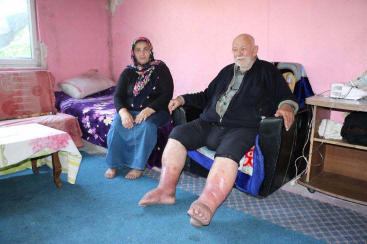 Zonguldak'ın Alaplı ilçesine bağlı Okçular köyünde yaşayan 78 yaşında ki Ahmet Hilmi Aygün, 3 senedir ayaklarında ki şişlik nedeniyle kızının yardımı ile hayatını sürdürmeye çalışıyor. Yaşlı adam sağlığına kavuşmak için yetkililerden ve hayırsever vatandaşlardan yardım beklediğini söyledi.