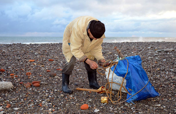 Zonguldak'ın Kozlu ilçesinde ikamet eden 85 yaşındaki Yusuf Turan, her yağmur sonrasında Kozlu sahiline geliyor. Yaklaşık 10 yıldır her yağmur sonrası dalgaların sahile vurduğu hurdaları toplayan Turan, bu sayede evde ekmek bekleyen 80 yaşındaki eşi Hacer Turan'a bakıyor. 3 çocuğunun başka illerde çalıştığını, eşi ile birlikte geçinmeye çabaladıklarını ifade eden Turan, "Geçimimi bunlarla sağlıyorum, deniz atıyor. Dalga getiriyor. 3 çocuğum var ama onlar da İstanbul'da boşta. İzmit'te boştalar, çalışmıyorlar. 10 senedir ben böyle burada hurda topluyorum. Her sene kömürümü bir vatandaş veriyordu. Bu sene o kömürüm de yok. Bu hurdaları satacağım, ekmek parasını çıkaracağım. Eşim var ama bacağında demir var. Sakat yaşıyor. Dalga olursa, topladığım hurdaları satacağım. Bu topladıklarım da 7-8 TL tutar. Her zaman dalga olmuyor. Şişe topluyorum, kutu topluyorum. Dalga olduğu zaman da hurda topluyorum. Sabah saat 8'de geldim. Topladıklarım 15 kilogram var. Kilogramını 50 kuruştan satıyorum" dedi.