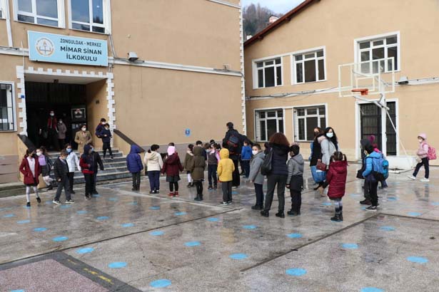 Yüksek riskte olan Zonguldak’ta eğitim öğretime açılan okullarda öğrenciler sabah saatlerinde ilk derslerine girdiler.