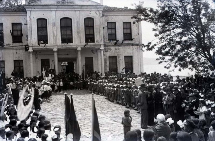 gayet muntazam ve ciddi geldiler, durdular. Arkadan öteki okullar. Önde iki