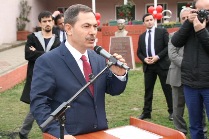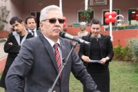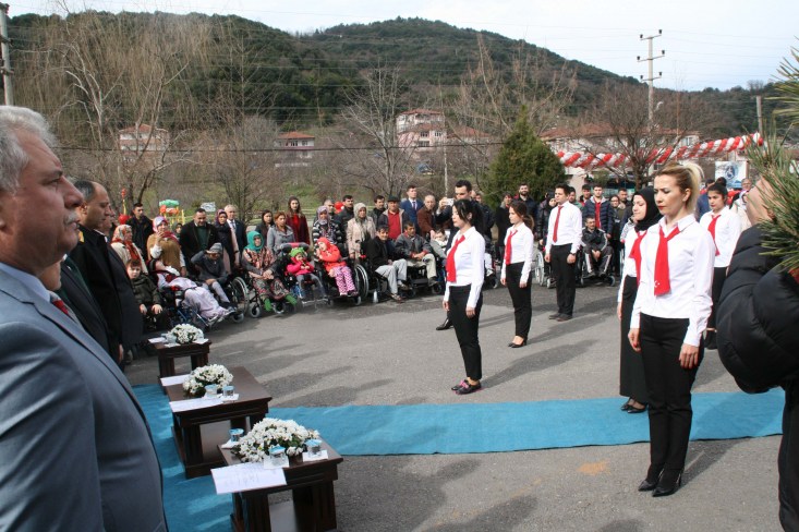 Tören öncesinde saygı duruşunda bulunuldu, Duyan İşitme ve Rehabilitasyon Merkezi öğretmenlerinin işaret dili eşliğinde İstiklal Marşı seslendirildi.