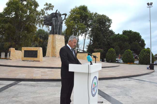 Başkan Yardımcısı Selma Açıkgöz, Zabıta Müdürü Halit Aydın tarafından Atatürk Anıtı’na çelenk bırakıldı.