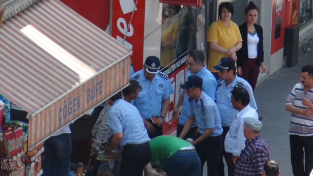 durumda olduğunu belirtip direndi. Tezgahın kaldırılmaması üzerine zabıtalar,