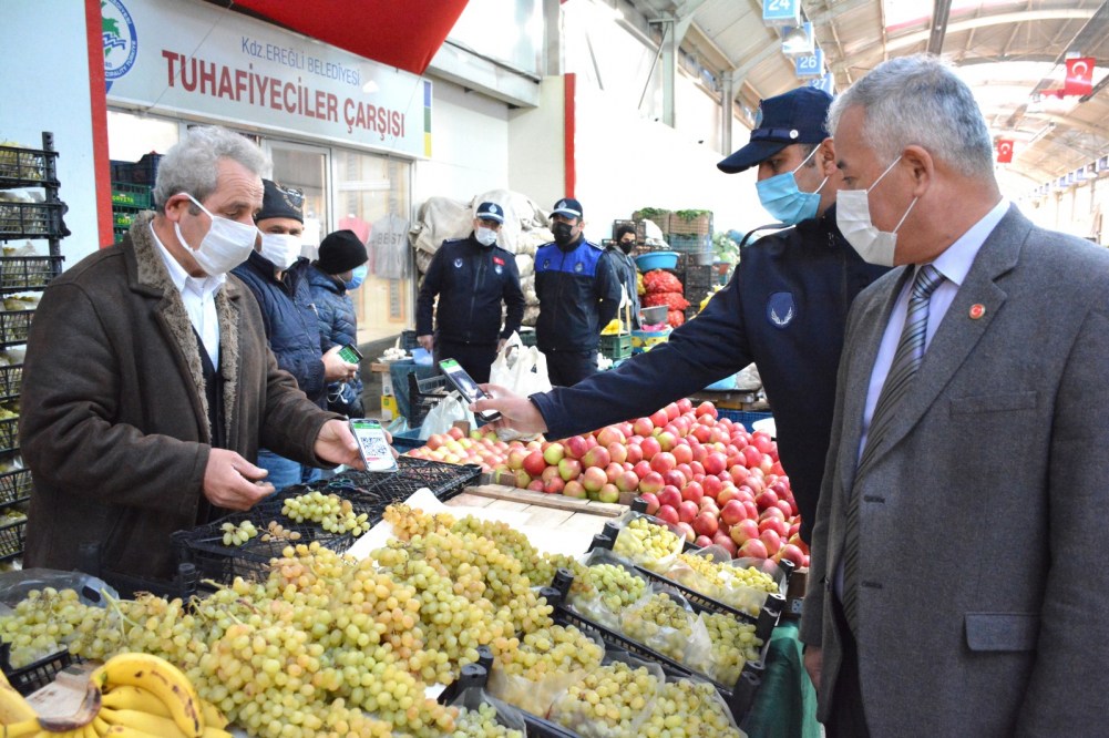Kdz. Ereğli Belediyesi Zabıta Müdürlüğü ekipleri halkın yoğun olarak bulunduğu alanlarda ve Pazar yerlerinde koronavirüs denetimlerini sıklaştırdı.