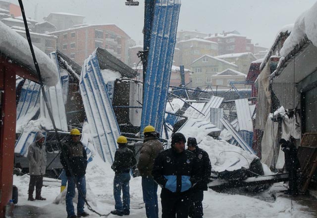 Zonguldak&8217;ta dün akşam 17.30 sıralarında çöken kapalı pazar yerinin enkazında polis ve zabıta ekipleri nöbet tutuyor.