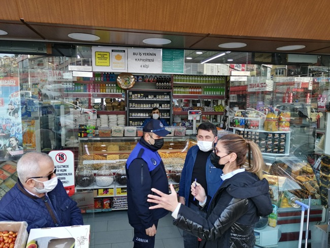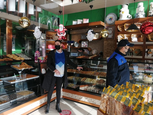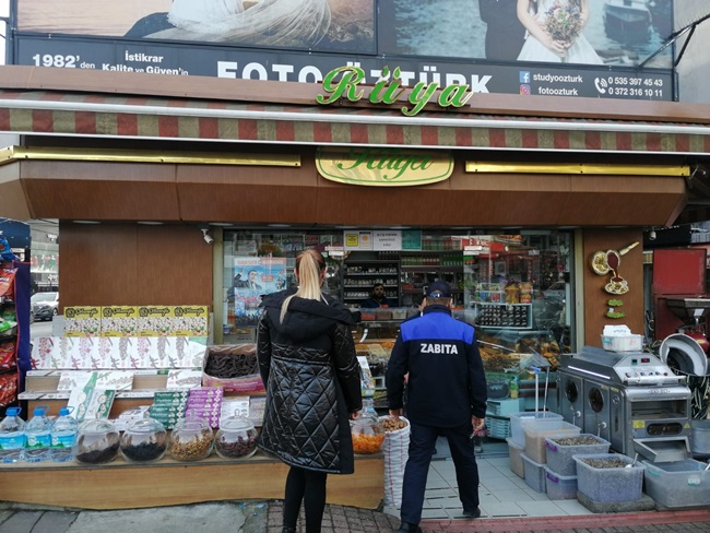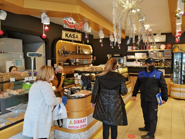 Kent genelindeki gıda üretim ve satış yerlerini denetleyen ekipler Covid-19 tedbirlerine uyum, gıdaların saklanması, depolanması, son kullanma tarihleri, genel temizlik, çalışan personelin kıyafetleri, hijyen eğitim belgesi gibi konularda kurallara uyulup uyulmadığını kontrol etti.