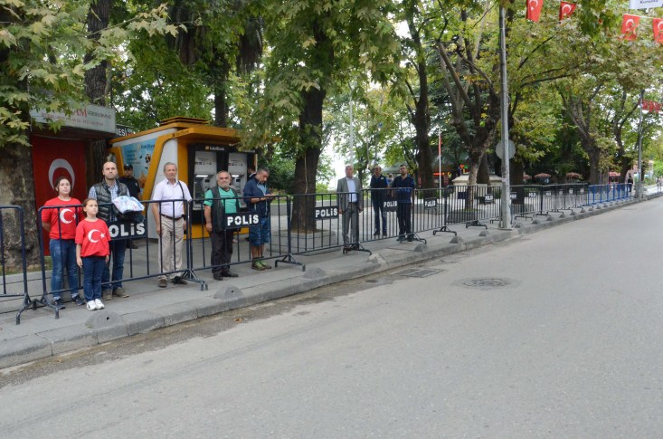 Vali Ahmet Çınar ve Belediye Başkanı Muharrem Akdemir, halkı selamlamak için tören alanına getirilen askeri araca binmeyip yaya olarak, törene katılan halkı selamladı. Halktan katılımın az olması ise dikkat çekti.