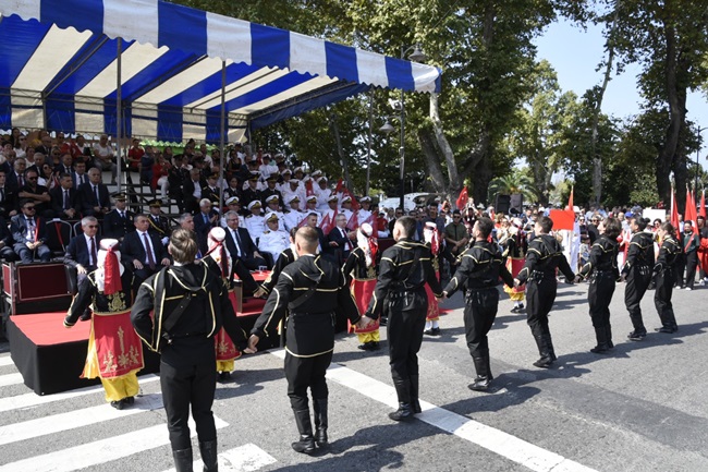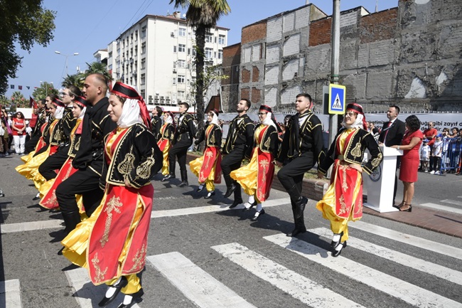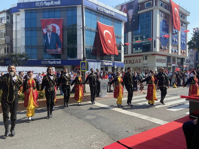 Daha sonra öğrencilerin şiir okuması ve Karadeniz Ereğli Belediyesi Halk Oyunları ekiplerinin gösterileri ile devam eden program geçit töreni ile sona erdi.
