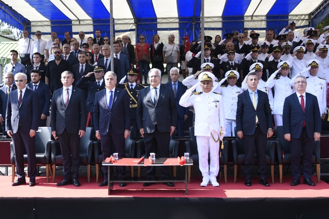 Kaymakam Mehmet Yapıcı, Karadeniz Bölge Komutanı Deniz Albay Ahmet Öztürk ve Karadeniz Ereğli Belediye Başkan Vekili Erkan Mutlu’nun tören alanında bulunanların bayramlarını yürüyerek kutlamalarının ardından saygı duruşu ve İstiklal Marşı'nın okunması ile devam etti.