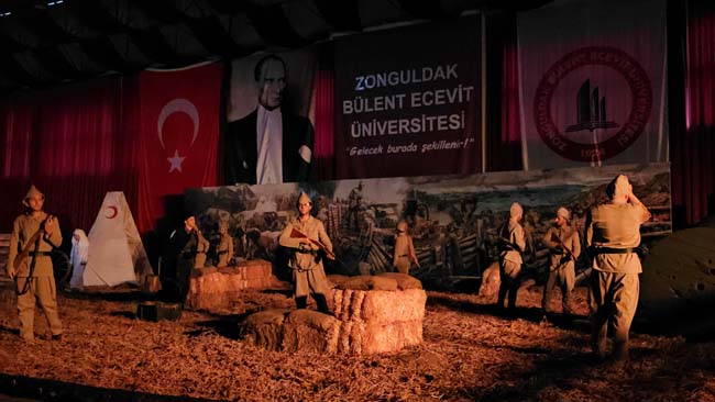 Zonguldak'ta 18 Mart Çanakkale Zaferi ve Şehitleri Anma Günü kapsamında Bülent Ecevit Üniversitesi Kapalı Spor Salonu'nda Çanakkale Savaş Gösterisi sergilendi.