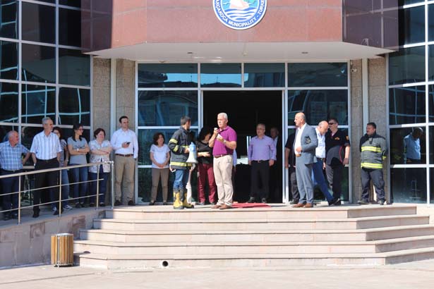 Binada yangın durumunda daha etkin müdahale amacıyla düzenlenen tatbikatta belediye personelinin çalan siren eşliğinde binayı boşaltması yaklaşık 3,5 dakika sürdü. Temsili olarak çıkarılan yangın ile tatbikat gereği dumandan etkilenen belediye çalışanı Hesap İşleri Müdürü Ferhat Küçük, kurtarma ekipleri tarafından sedye yardımı ile binadan başarıyla tahliye edildi. İtfaiye Müdürü Ali Uzunoğlu tarafından tatbikatta bir yangın anında meydana gelebilecek yaralanmalar ve yapılması gereken ilk müdahaleler hakkında belediye personeline bilgi verildi.