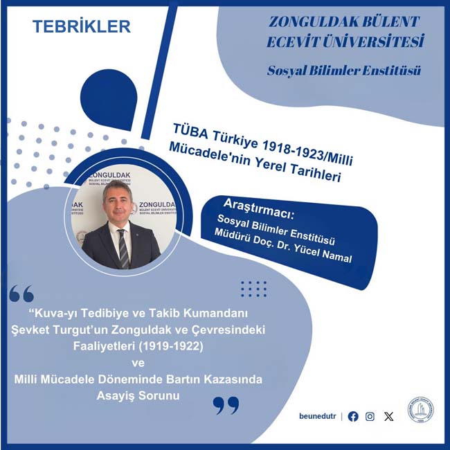 Zonguldak Bülent Ecevit Üniversitesi Sosyal Bilimler Enstitüsü Müdürü Yücel Namal, “Kuva-yı Tedibiye ve Takib Kumandanı Şevket Turgut’un Zonguldak ve Çevresindeki Faaliyetleri (1919-1922)” ve “Milli Mücadele Döneminde Bartın Kazasında Asayiş Sorunu” başlıklı çalışmalarıyla, İnsan ve Toplum Bilimleri Fakültesi Tarih Bölümü Öğretim Üyesi Doç. Dr. Gürbüz Aslan ise “Milli Mücadele’de Zonguldak ve Milli Mücadele’de Bartın” başlıklı çalışmalarıyla TÜBA ve Fatih Sultan Mehmet Vakıf Üniversitesi işbirliği ile yürütülen “Türkiye 1918-1923/Milli Mücadele'nin Yerel Tarihleri” projesinde araştırmacı olarak yer aldı.