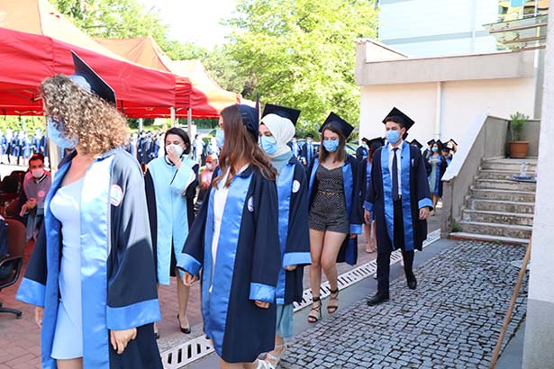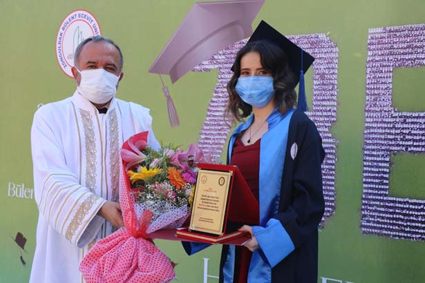 Konuşmaların ardından dönem birincisi, ikincisi ve üçüncüsüne plaketleri takdim edildi. Dönem birincisi Melis Ayçiçek mezuniyet kütüğüne ismini çaktı. Mezunlara diplomalarının verilmesinin ardından tören sona erdi.