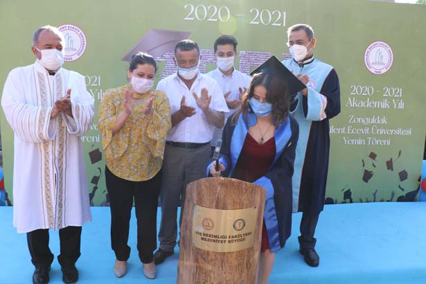 Zonguldak Bülent Ecevit Üniversitesi 2020-2021 eğitim öğretim yılı Diş Hekimliği Fakültesi mezuniyet töreni gerçekleştirildi. Saygı duruşunun ardından İstiklal Marşı’nın okunduğu törenin açılış konuşmasını dönem birincisi Melis Ayçiçek gerçekleştirildi. Ayçiçek, “Böyle meşakkatli bir bölümü okurken, hastalarımızın güzel temennileri, tedavi sonundaki mutlu ifadeleri bizleri mutlu etti. Desteğimizi esirgemeyen arkadaşlarım, eğitim aldığımız fakültede mesleğimizin bizde taşıdığı sorumluluklara her gün biraz daha yaklaştık. Birinci sınıfın ilk gününden itibaren her türlü zorlukta bizleri yetiştiren öğretim üyelerimize ve asistanlarımıza teşekkür ediyorum” diye konuştu.