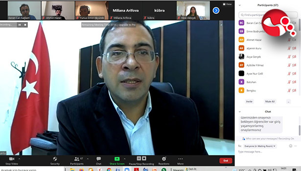 Çevrimiçi olarak düzenlenen etkinliğe Diş Hekimliği Fakültesi Dekanı Prof. Dr. Emre Bodrumlu, dekan yardımcısı Prof. Dr. Baran Can Sağlam ve Dönem I danışmanı Dr. Öğr. Üyesi Ahmet Hazar ve Dönem I öğrencileri katıldı.