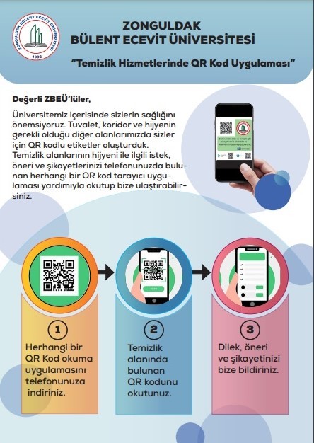 Zonguldak Bülent Ecevit Üniversitesi, QR teknolojisinin başta temizlik olmak üzere birçok alanda kullanımını yaygınlaştırmasıyla bölgede ve ülkede ilklerin üniversitesi olma yönünde hızla ilerliyor.
