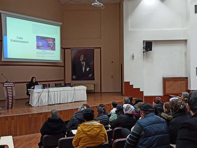 Çeşitli okul personelinin katıldığı eğitim Zonguldak Öğretmen Evi’nde verildi. İl Milli Eğitim Şube Müdürü İsa Kürşad Ünver’in açılış konuşmasını yaptığı etkinlikte, ZBEÜ Mühendislik Fakültesi Gıda Mühendisliği Bölümü öğretim elemanı Arş. Gör. Esra Bostancı Selbeş, hijyen konusuyla ilgili sunum gerçekleştirdi.