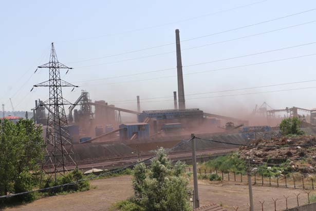 Bugün öğle saatlerinde ise Erdemir fabrikası sınırları içerisinde bulunan Cevher depolama sahasından rüzgârla kalkan tozlar ilçenin rengini değiştirdi. Fabrika sahasından kalkan tozlar rüzgarın da etkisi ile kısa sürede yayılırken, bu tozlardan en çok etkilenen mahalleler ise Gülüç, Kışla, Doruk oluyor.