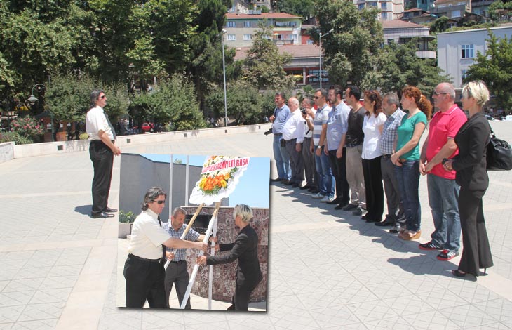Zonguldak gazeteciler Cemiyeti Genel Merkezi Atatürk Anıtına çelenk koyarak gazeteciler bayramını kutladı. 24 Temmuz Basın Bayramını- Basında sansürün kaldırılışının yıldönümü nedeniyle yapılan törenle saygı duruşunda bulundu.