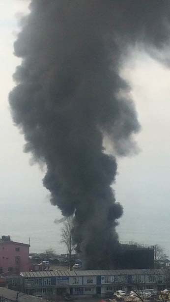 Dev dumanlar gökyüzünü kaplarken, itfaiye kısa sürede yangına müdahale etti.