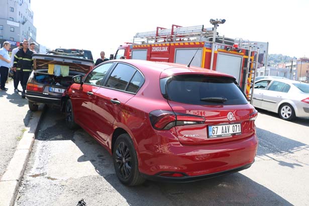 Zonguldak'ta bir ay önce sıfır kilometre olarak alınan otomobilin karıştığı zincirleme kazada 4 otomobilde hasar meydana geldi.