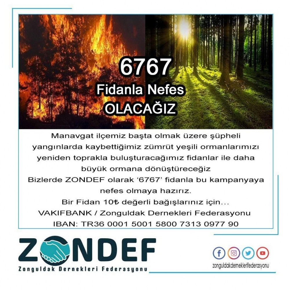 Son günlerde ülkenin çeşitli yerlerinde çıkan yangınlar sebebiyle ormanlar ve yerleşim alanları zarar gördü. Zonguldak Dernekleri Federasyonu "6767" fidanla kampanya başlattı.