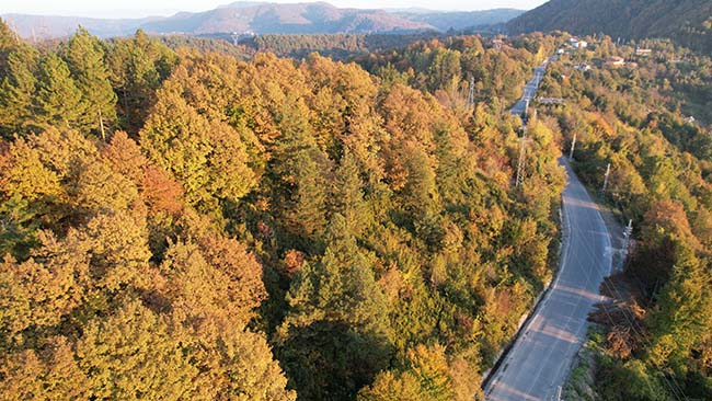 Batı Karadeniz'in yer altı güzelliklerinin yanı sıra denizi ve doğalgaz keşifleriyle ön plana çıktığı Zonguldak, sonbaharla birlikte ormanlarıyla da adeta dikkat çekiyor. Kent Ormanı; sonbahar mevsiminin gelmesiyle farklı bir güzelliğe büründü. Dökülen yapraklarla rengarenk görselliğine bürünen ormanlar, dikkat çekmeye devam ediyor. Yeşil rengin kırmızıya dönüştüğü, farklı türde ağaç türleri, yürüyüş yolları, dere ile doğal güzelliklerini barındıran Kent Ormanı, sonbaharın tüm güzelliklerinin birleştiği bölge haline geldi. Özellikle yürüyüş parkurlarıyla doğa severleri bekleyen kent ormanı dron ile havadan görüntülendi. Ormanlar sonbaharda rengarenk tonlarıyla unutulmaz anlar yaşatıyor.