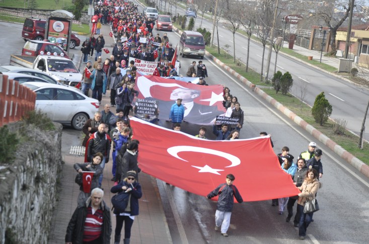 Gazipaşa Caddesi güzergahlarında sürdü. Ellerinde Türk bayrakları ile yürüyen