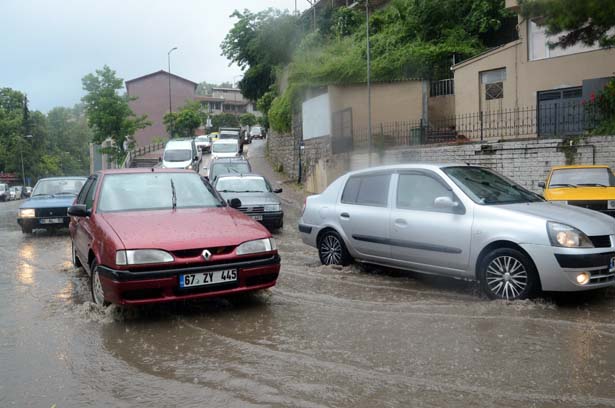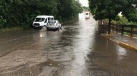 saatlerinde aniden bastıran yağmur sebebiyle su baskınları yaşandı.