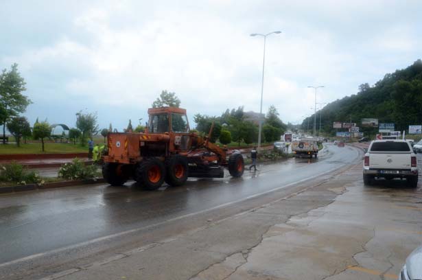 noktasına gelirken belediye ekipleri tıkanan logarları temizleme çalışması