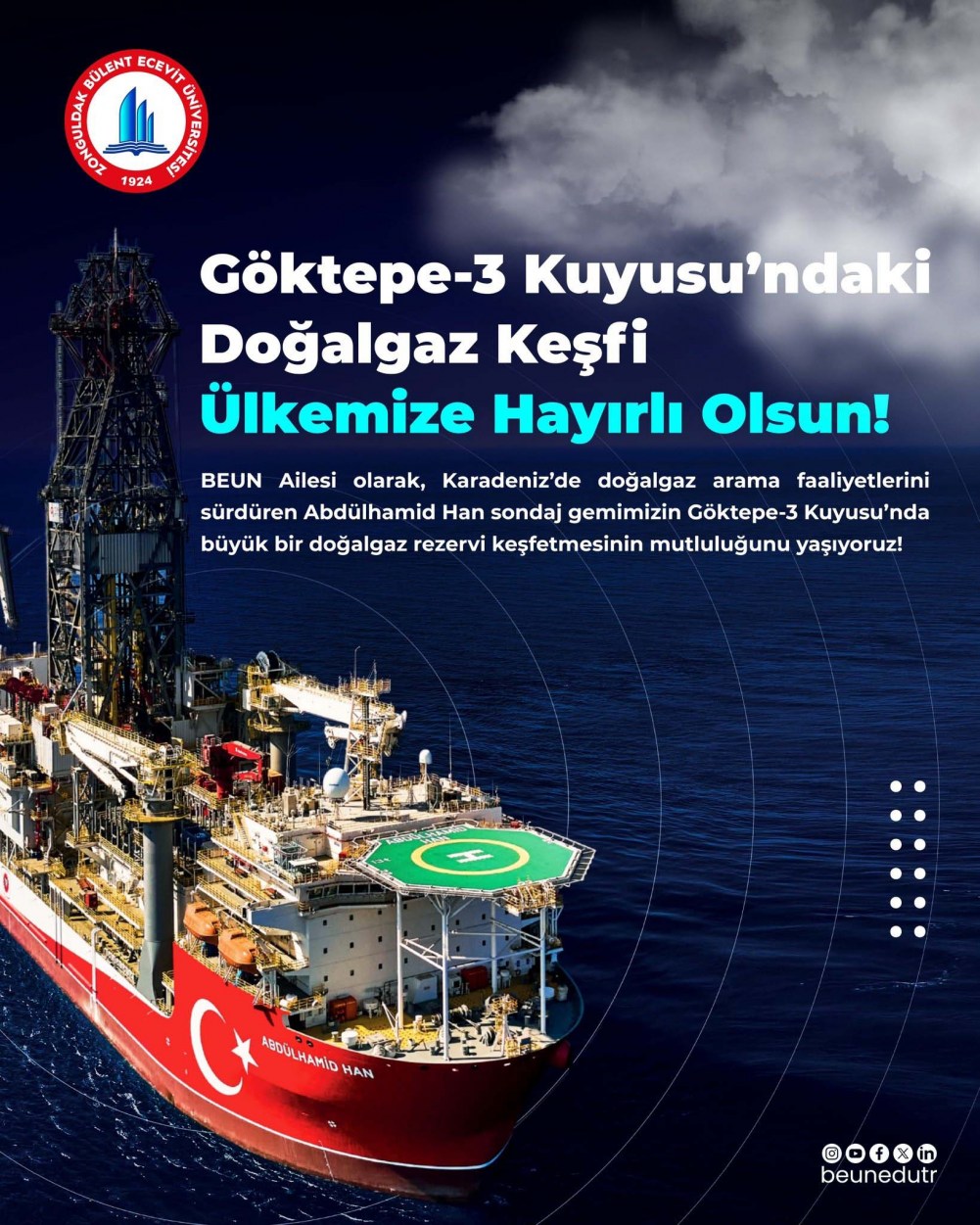Zonguldak Bülent Ecevit Üniversitesi (BEÜ) Rektörü Prof. Dr. İsmail Hakkı Özölçer, Abdülhamid Han sondaj gemisinin Göktepe-3 kuyusunda Karadeniz açıklarında bulduğu yeni doğalgaz rezervine ilişkin açıklamalarda bulundu. Özölçer, Türkiye’nin enerji bağımsızlığı yolunda önemli bir adım atıldığını vurguladı.