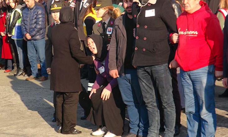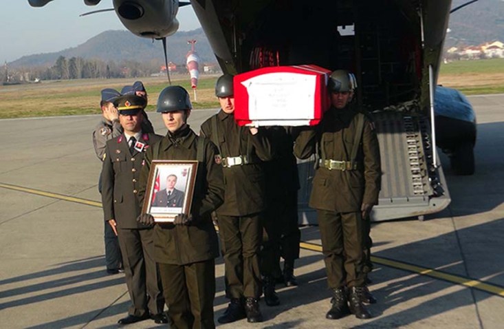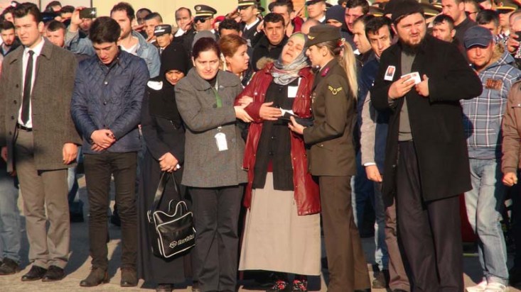 Öte yandan şehidin eşi Derya Çakar'ın ayakta durmakta güçlük çektiği görüldü. Askerlerin omuzlarında taşınan şehidin cenazesi karayolu ile Kilimli ilçesine hareket etti.