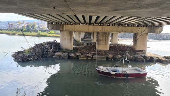 Zonguldak’ı İstanbul'a bağlayan köprünün ayaklarında selden dolayı biriken ağaç köklerinin temizlenmemesi vatandaşları tedirgin ediyor.