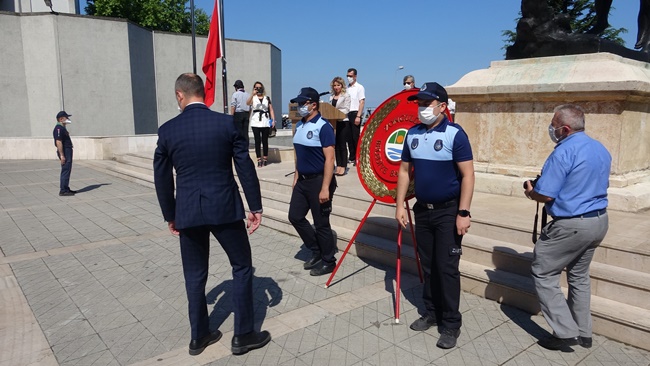 Lise öğrencisinin Zonguldak adlı şiirini okumasının ardından çelenk sunma töreni sona erdi.