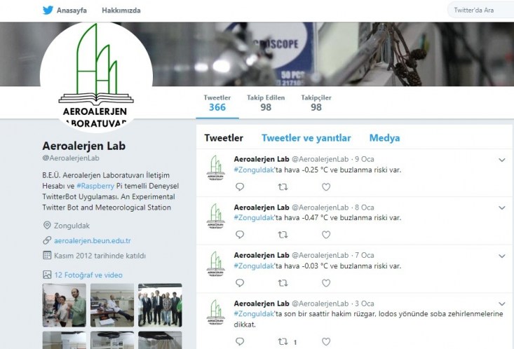 Aeroalerjen Laboratuvarı için açılmış olan "@AeroalerjenLab" adlı bir Twitter