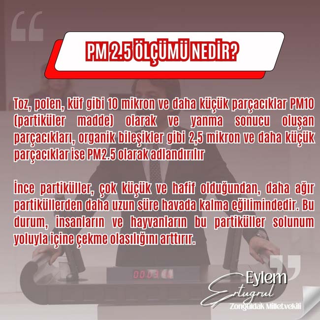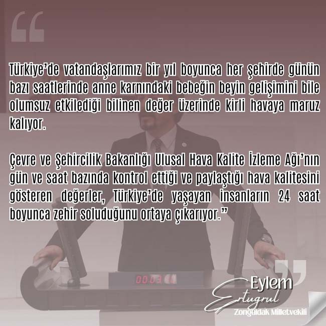 CHP Zonguldak Milletvekili Eylem Ertuğrul, "Hava Kalitesi İzleme ve Ölçüm İstasyonları ile ilgili yazılı açıklama yaparak hava alarm veriyor!" dedi