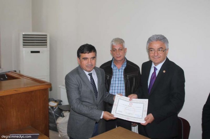 Milletvekilleri Şerafettin Turpçu ve Ünal Demirtaş mazbatalarını alırken, daha