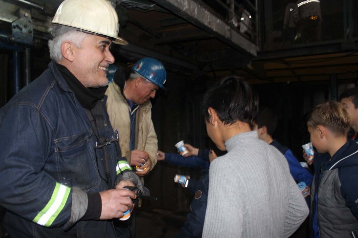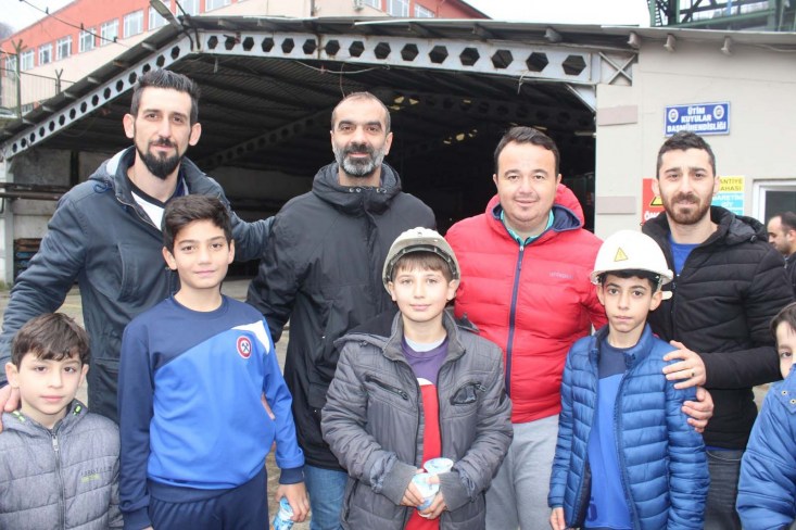 Bir dönemin efsane takımı Zonguldakspor'un minik yıldızları, Türkiye Taş Kömürü Kurumu (TTK) çalışan madenci ağabeylerini ziyaret ederek ocaktan çıkan işçilere ayran ikram etti.