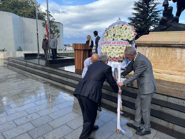 Valilik önünde ki tören saygı duruşu ve istiklal marşının okunmasıyla başladı. Ardından günün anısına muhtarlar Atatürk anıtına çelenk koydu.
