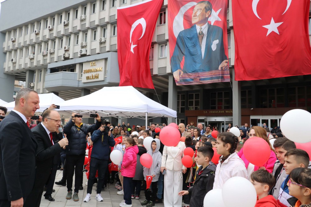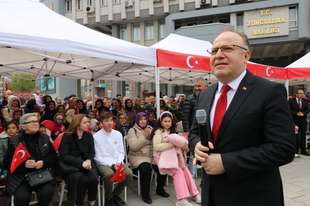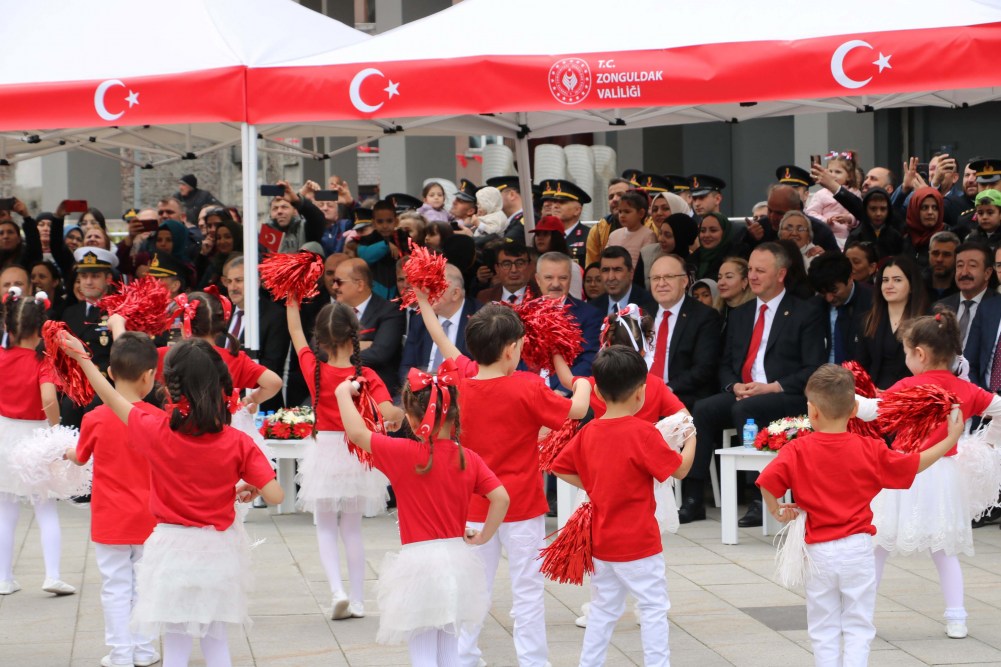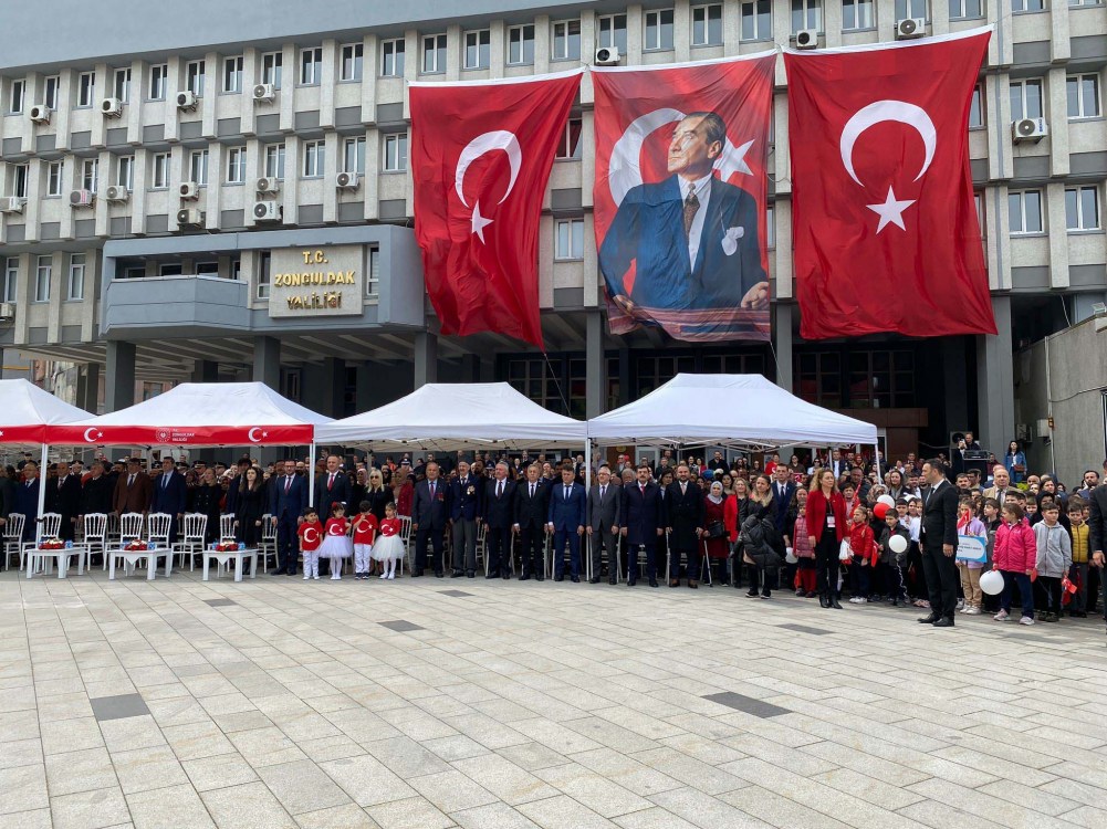 23 Nisan Ulusal Egemenlik ve Çocuk Bayramı etkinlikleri Valilik binası önündeki tören alanında devam etti. Çelenk sunma töreninin ardından İstiklal Marşı okundu. Ardından Zonguldak Valisi Mustafa Tutulmaz ve Belediye Başkanı Ömer Selim Alan öğrencilerin ve vatandaşların bayramını kutladı. Günün anlam ve önemini belirten şiirlerin okunmasının ardından Milli Eğitimi Müdürü Züleyha Aldoğan, "Türkiye Büyük Millet Meclisimiz bağımsızlığımızın milli iradenin ve demokrasinin öncüsü olmuştur. 23 Nisan Ulusal Egemenlik ve Çocuk Bayramı milletimizin geleceğimizin teminatı olan çocuklarımıza verdiği değeri en somut biçimde göstermektedir. En değerli varlıklarımız olan çocuklarımız sevginin, barışın, adaletin ve kardeşliğin temsilcileri olarak bugünlerimizin gururu yarınlarımızın güvencesidir" dedi.