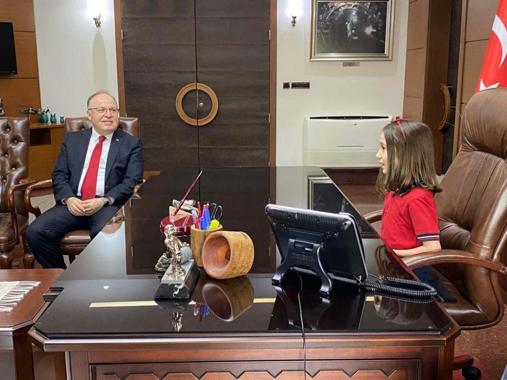 Cumhuriyetin ilk vilayeti Zonguldak'ta 23 Nisan coşkusu yaşandı. Makama oturan minik vali ise yıkılıp yeniden yapılması planlanan okulunun inşaatının hızlıca tamamlanmasını istedi.