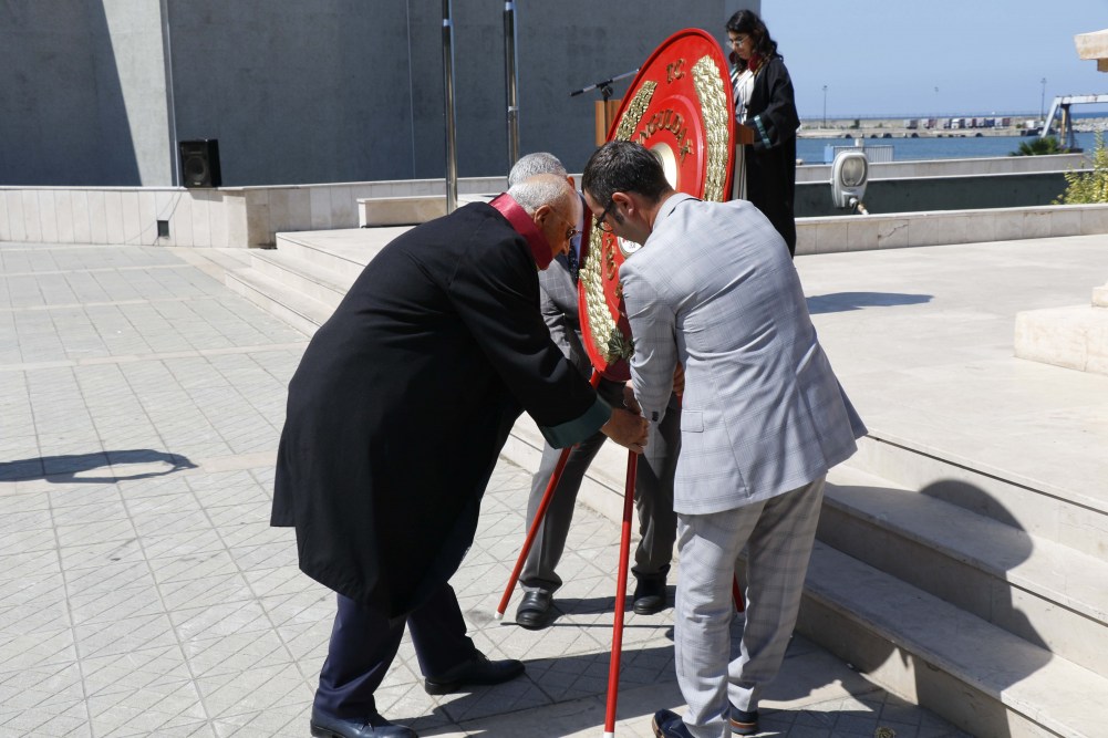 Zonguldak Valilik Binası önünde düzenlenen törene çok sayıda avukat katıldı. Atatürk Anıtına çelenk sunumuyla başlayan törende saygı duruşunun ardından İstiklal Marşı’nın okundu. Düzenlenen törende günün anlam ve önemini belirten bir konuşma yapan Zonguldak Baro Başkanı Av. Özel Eroğlu, “Geçen yıl adli yıl açılışında neleri dillendirmiştik hafızalarımızı tazeleyelim. Öncelikle yargının, mesleğimizin sorunlarını konuşmuştuk. Bu yıl bunlar derlendi ve “Yargı reformu strateji” paketi haline getirildi bunu konuştuk konuşmaya devam ediyoruz. Ne getiriyor paket ? En önemlisi de 2009 ve 2015 yıllarında yapılan reform ve etik paketleri hayata geçmemesi nedeniyle kısmen hayata geçmesinden doğan haklı kaygılarımız var ve ekim ayını bekliyoruz. Peki pakette neler var? Halen 125 bin avukat var ve orantısız büyüme var. Bu nedenle avukatlık, hakimlik ve noterlik mesleğine başvurabilmede bir ön eleme mahiyetinde olan “Devlet hukuk sınavı” geliyor. Halka yansıması esas alınarak KDV de indirim düşünülüyor. Tapu işlemleri ve bazı sözleşmelerde mecburi avukat bulundurma ve onayı geliyor. Delil toplamada alan genişliyor, bilgi ve belgelere ulaşma kolaylığı sağlanıyor. Yargının unsurları arasındaki eşitliği sağlama göstergesi olarak özel damgalı pasaport verilmesi geliyor. Ayrıca hakim savcı noter yardımcılığı-hakim teminatı