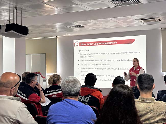 Destek Çözüm Ortakları olarak belirlenen kamu personellerinin katıldığı eğitimde, afet anında kullanılacak malzemelerin doğru şekilde tanınması, lojistik süreçlerin yönetilmesi ve acil barınma ihtiyacı için çadır kurulum teknikleri uygulamalı olarak anlatıldı. Eğitimle, afet durumlarında kamu kurumları arasındaki koordinasyonun güçlendirilmesi ve müdahale kapasitesinin artırılması amaçlandı.