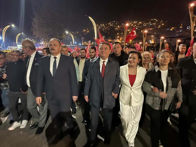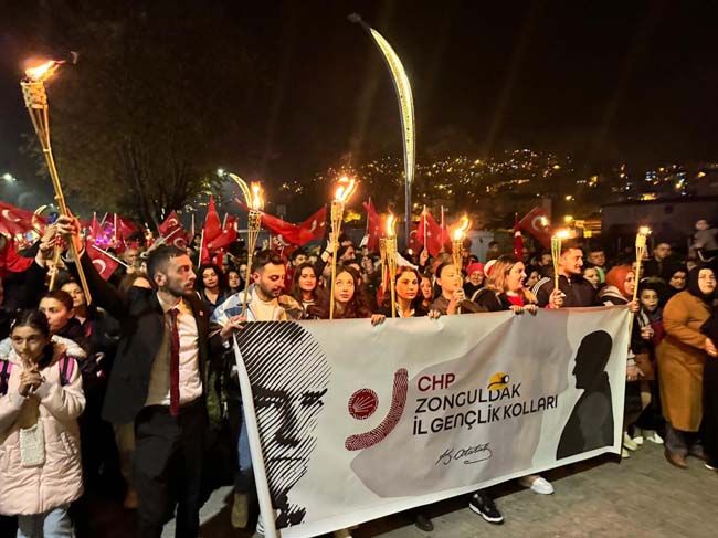 Zonguldak’ta 29 Ekim Cumhuriyet Bayramı kapsamında Fener Alayı yürüyüşü düzenlendi. Yürüyüşe, Belediye Başkanı Tahsin Erdem ve yüzlerce vatandaşlar katıldı.